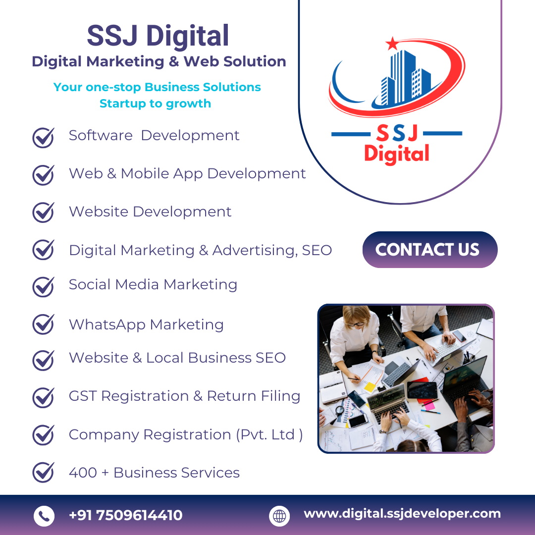 SSJ Digital – Website, SEO & Digital Marketing Agency is a full-service digital agency helping businesses grow online with result-driven strategies. We provide professional website design & development, SEO services, Google Ads (PPC), Meta Ads, social media marketing, content marketing, local SEO, e-commerce solutions, and complete online branding. We proudly serve businesses in Gwalior, Agra, Jhansi, and other major tourism cities including Orchha, Mathura, Vrindavan, and nearby regions. Our goal is to increase your online visibility, generate quality leads, and boost sales through smart digital marketing solutions. SSJ Digital focuses on transparency, performance, and long-term growth for startups, local businesses, and enterprises.